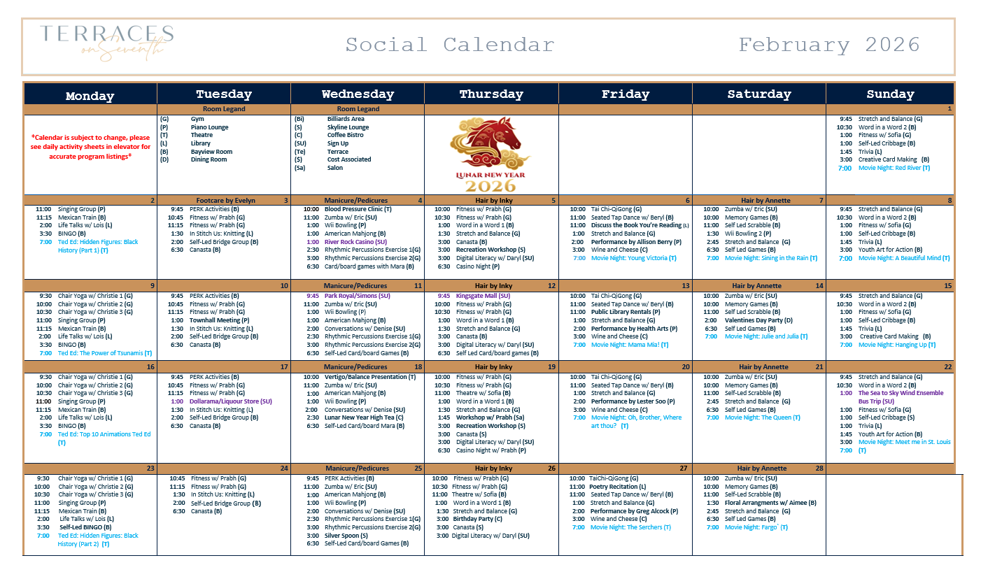 Recreation Calendar February 2026